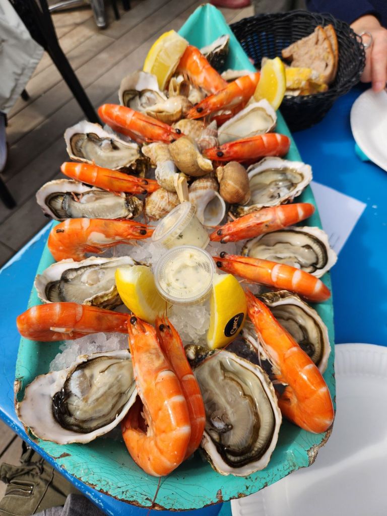 Un petit tour le dimanche matin, achat dorades direct pêcheur puis plateau de fruits de mer au centre ostréicole de Leucate